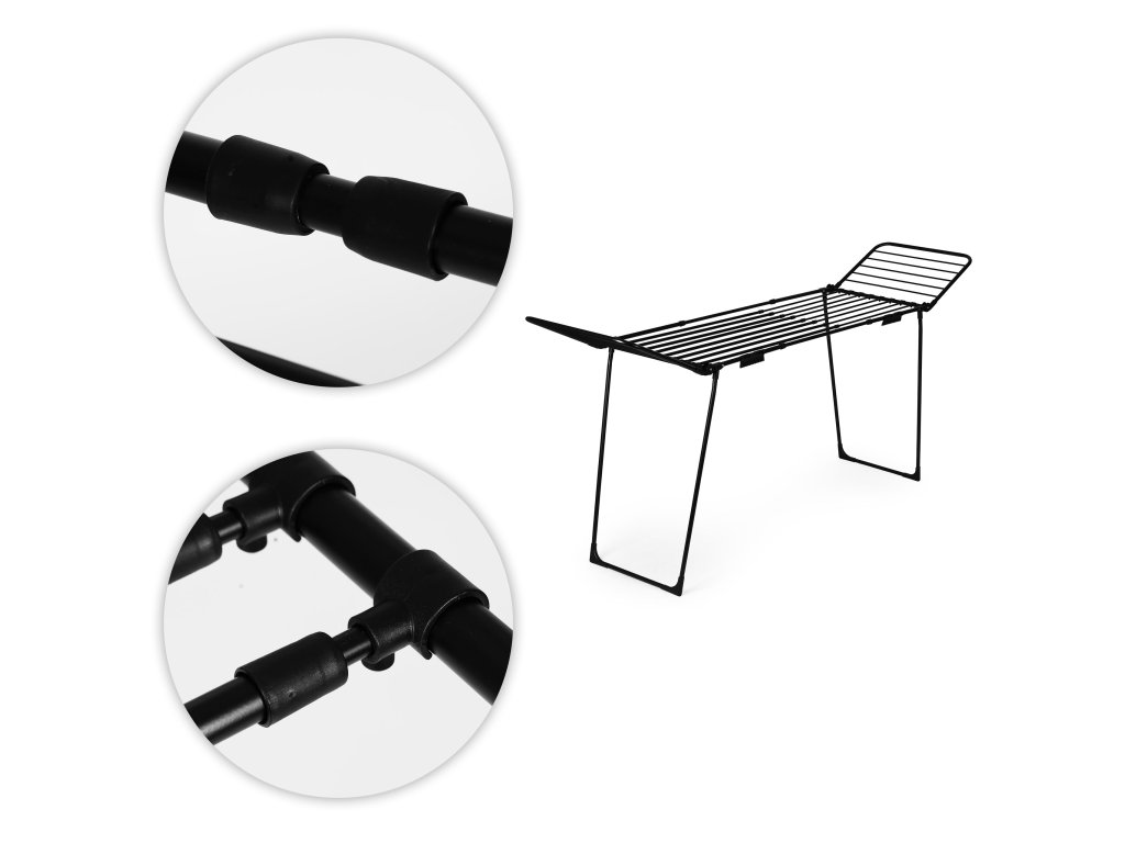 - Odnímatelné jednotlivé tyče poskytují flexibilitu při organizaci sušicího prostoru. Můžete snadno odstranit vybrané trubky, aby se vešly větší textilie, jako jsou peřiny, přehozy nebo záclony – bez zmačkání a s lepší cirkulací vzduchu.
