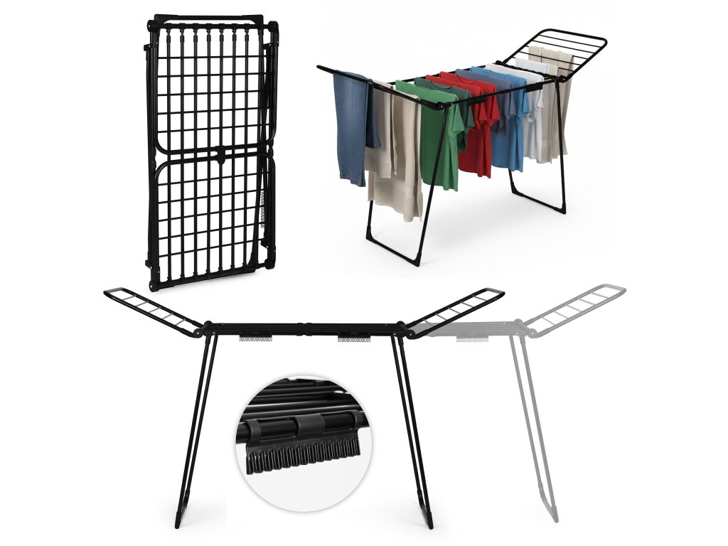 Stojanový teleskopický sušák na prádlo, výsuvný, 27 m2, skládací, černý