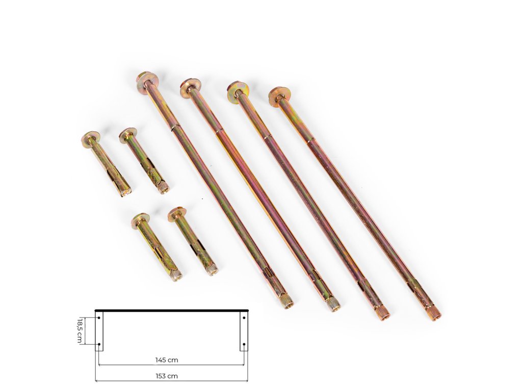 Sada obsahuje speciální kovové kotvy ve dvou délkách: