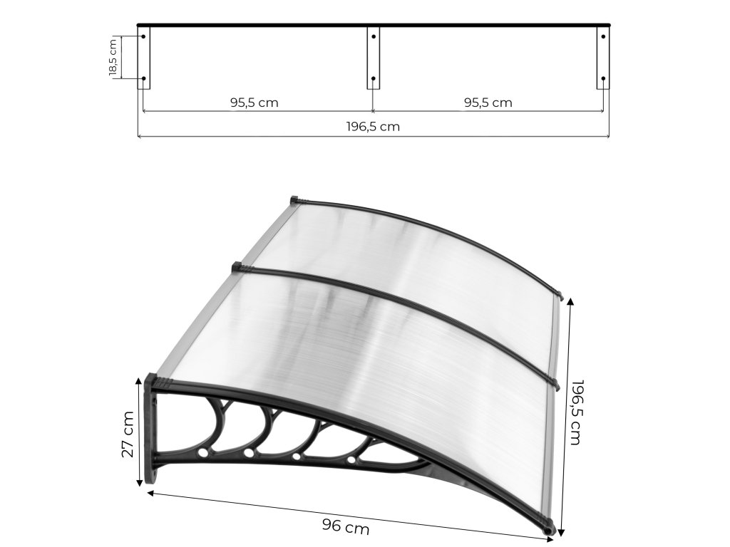Stříška nad dveře 200x100 cm kryt z dvojitého polykarbonátu