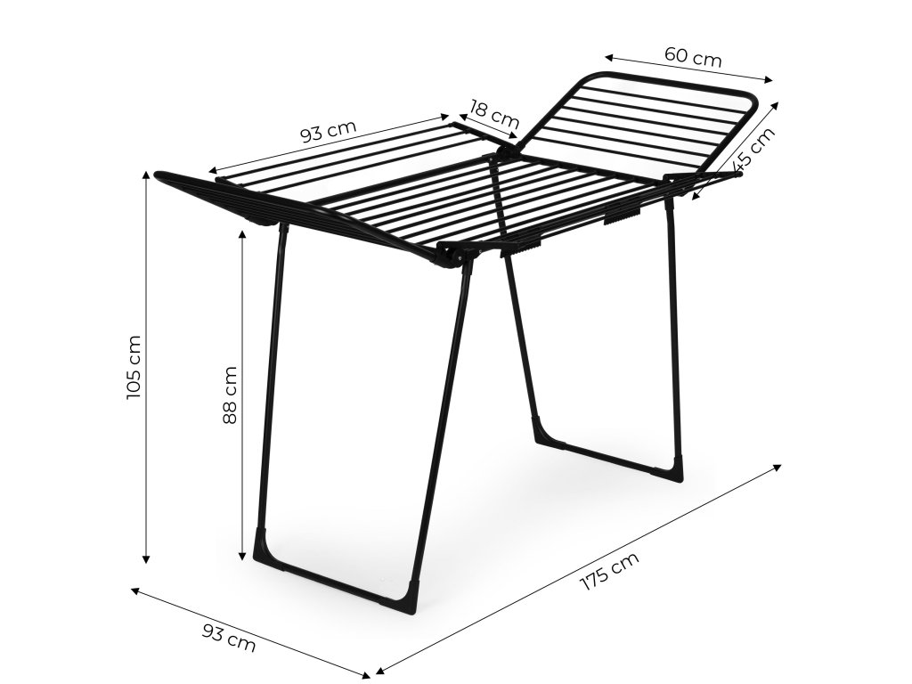 Sušák na prádlo, 25 m2, 4 křídla, skládací, černý