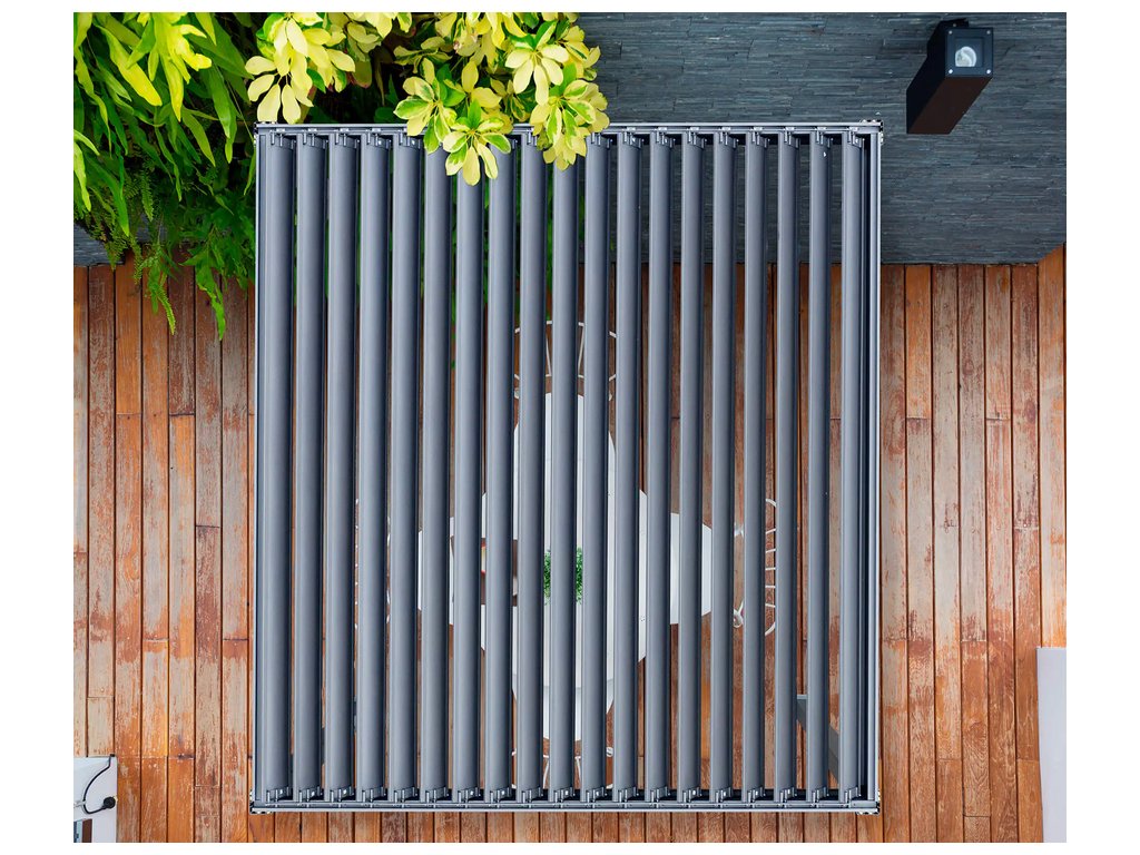 Střecha pergoly je vybavena systémem dvouvrstvých, překrývajících se lamel. Taková konstrukce zvyšuje účinnost ochrany před sluncem, zajišťuje ještě lepší ochranu a komfort používání a vytváří ideální podmínky pro relaxaci na čerstvém vzduchu.