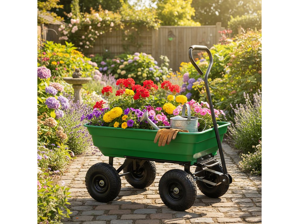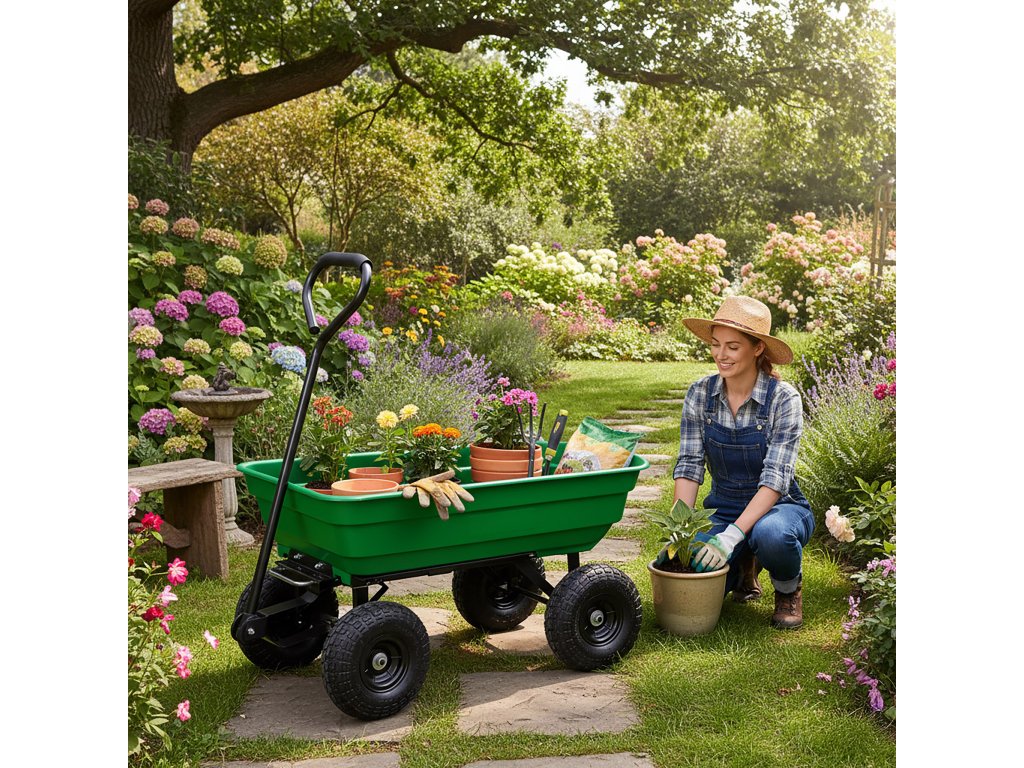 Zahradní vozík Garten se osvědčí jak v zahradě, na pozemku, tak i při renovaci. Díky funkci sklápěcího vozíku a nafukovacím kolům si poradí s jakýmkoli terénem a zajistí pohodlí a všestrannost použití.