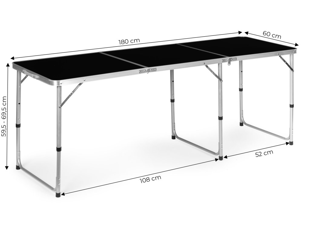 Turistický stolek, skládací kempingový stolek, 180 x 60 cm, černý