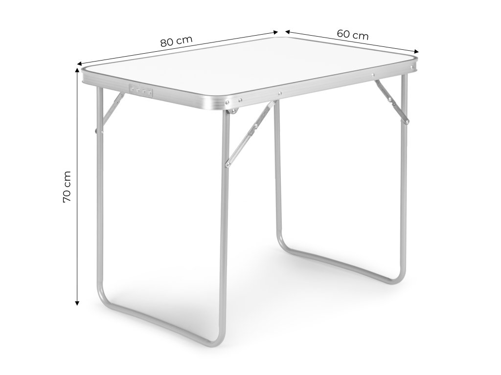 Turistický stůl je praktický a funkční kus nábytku ideální na pikniky a výlety. Rozkládací deska o rozměrech 80 × 60 cm je vyrobena z odolného materiálu s imitací dřeva. Stůl se vyznačuje robustní konstrukcí, která zajišťuje stabilitu při používání, a zároveň je lehký a snadno přenosný. Díky možnosti složení stůl zabírá málo místa, takže se snadno přenáší a skladuje.