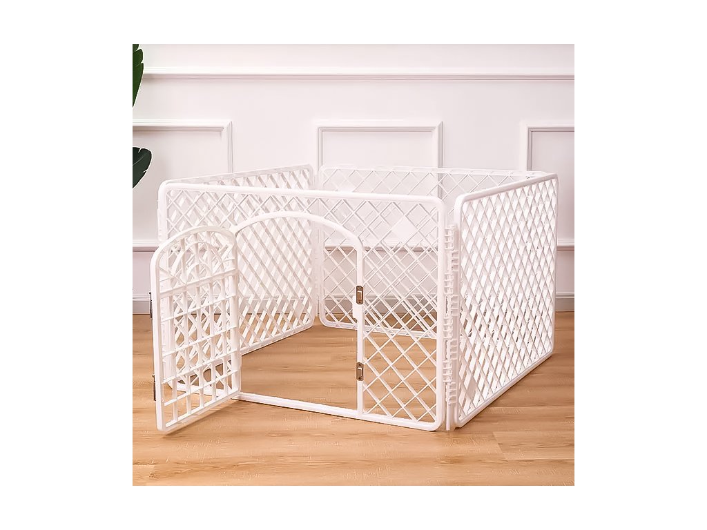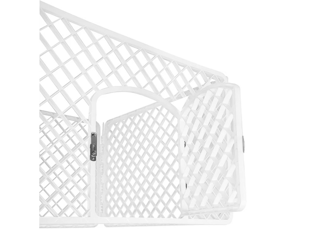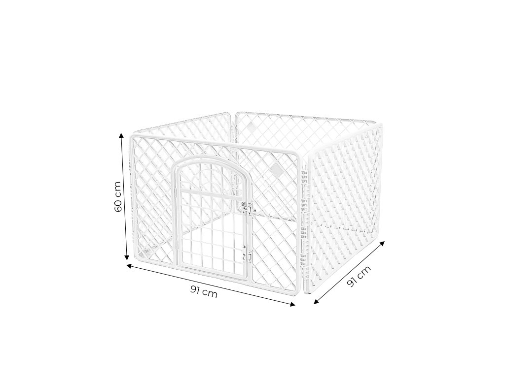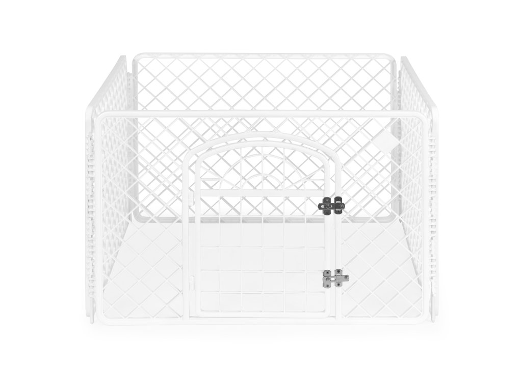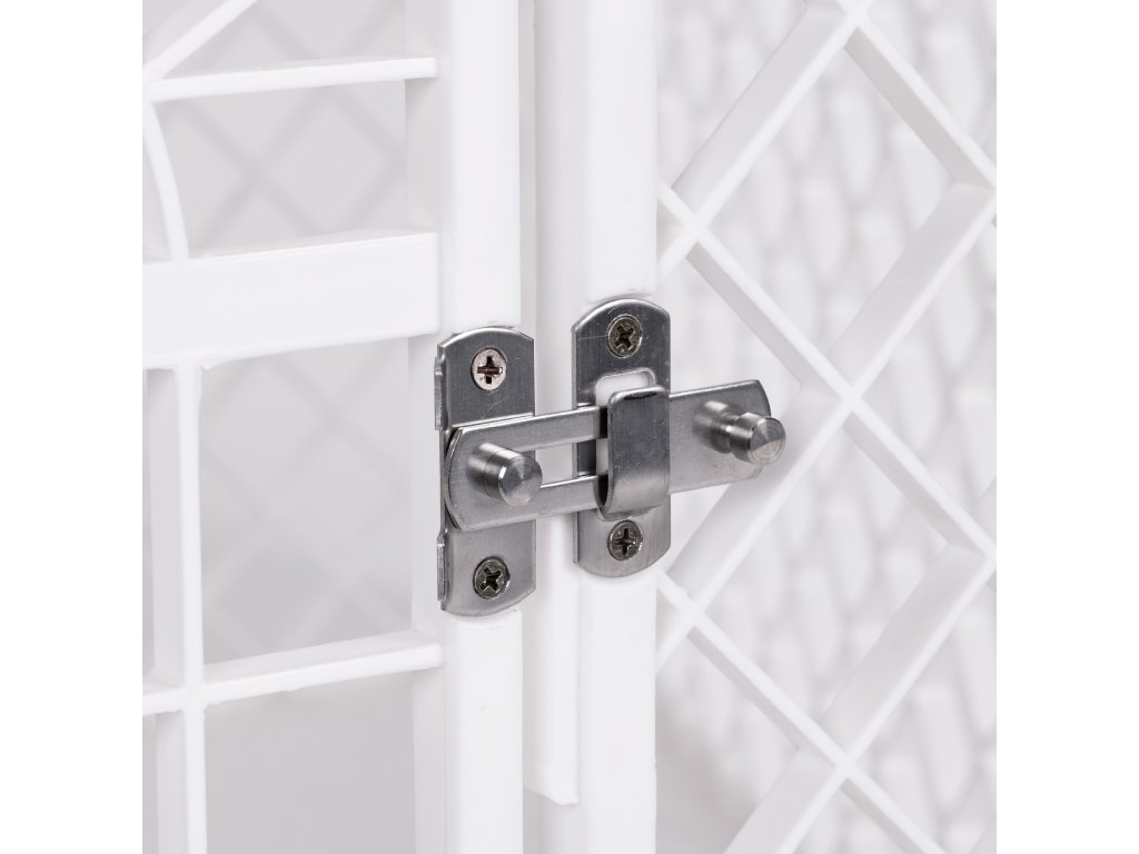 Ohrádka je vybavena uzamykatelnou brankou, která umožňuje snadný vstup a výstup vašeho mazlíčka a zároveň zabraňuje náhodnému otevření. Zaoblené designové prvky jsou nejen stylové, ale také snižují riziko zranění vašeho mazlíčka.