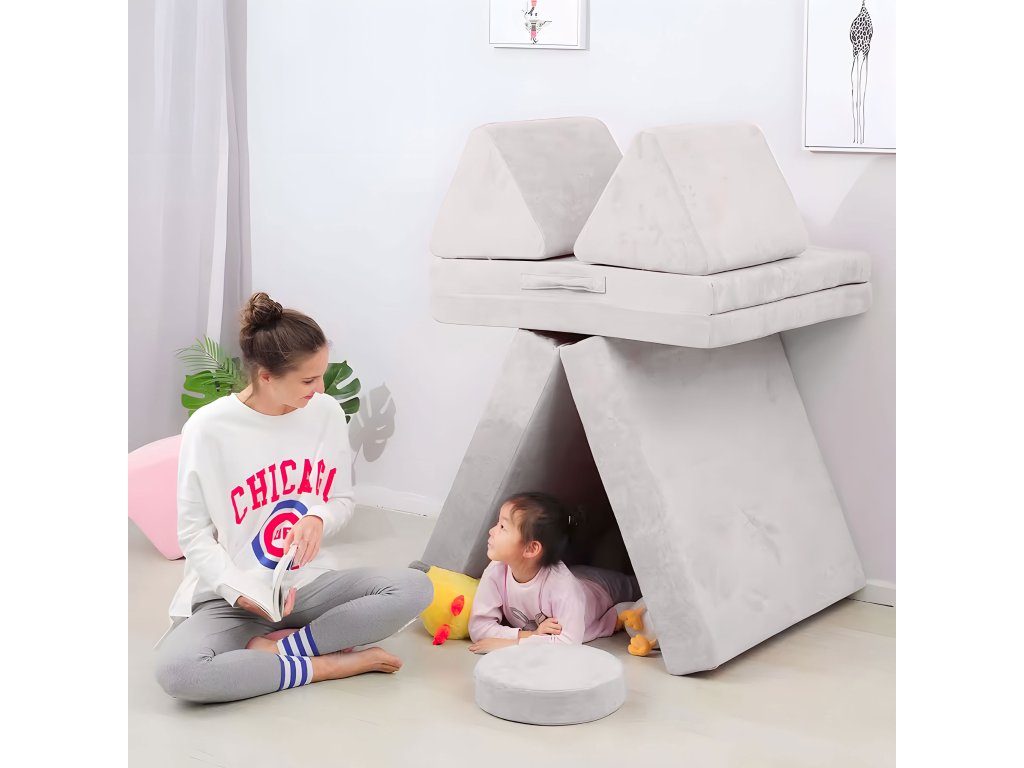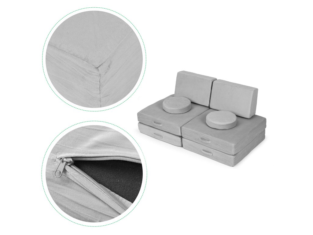 Velká skládací modulární pohovka pro děti, 8 měkkých polštářů – šedá