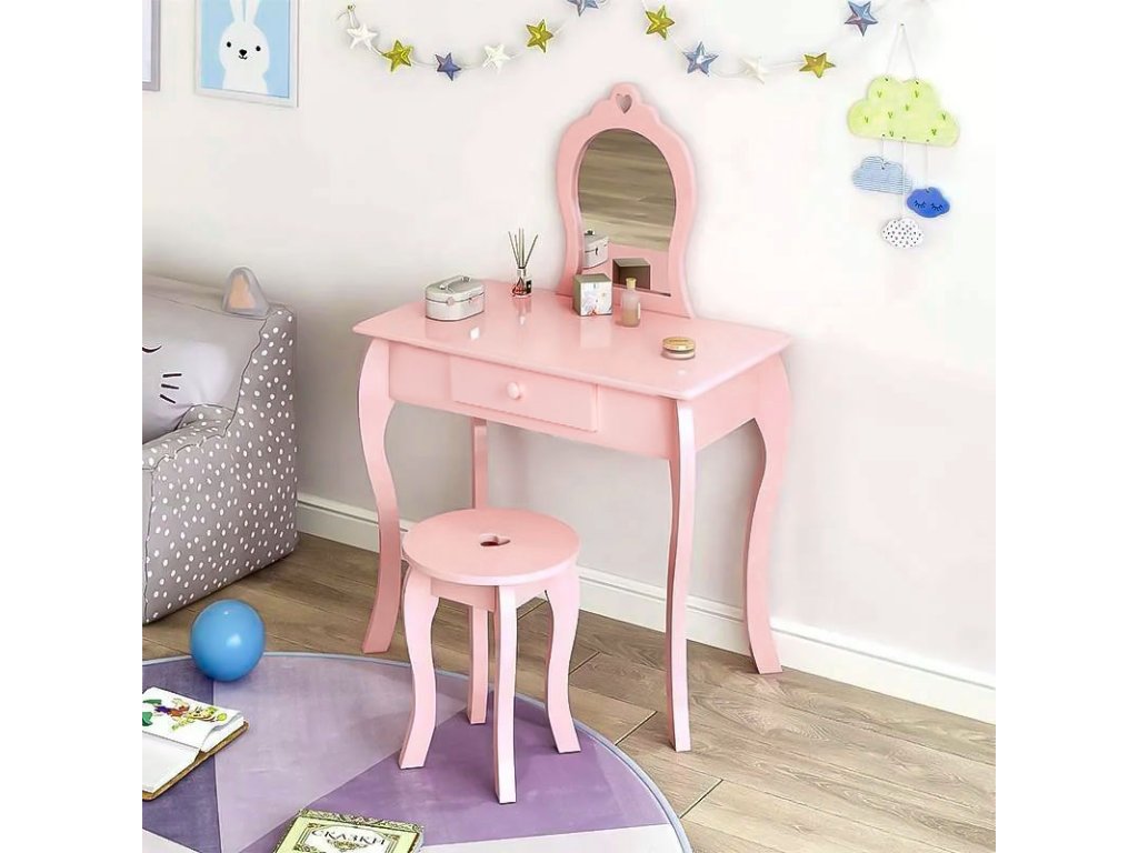 Představujeme rozkošný toaletní stolek pro dívky, který potěší každou malou princeznu. Tento fantastický toaletní stolek je navržen s ohledem na pohodlí a zábavu a vytváří tak zvláštní místo, kde si děti mohou užít chvilku pro sebe. Toaletní stolek bude vypadat úžasně v každém dívčím pokoji a je vybaven velkým krásným zrcadlem, zásuvkou na doplňky a pohodlnou stoličkou.
