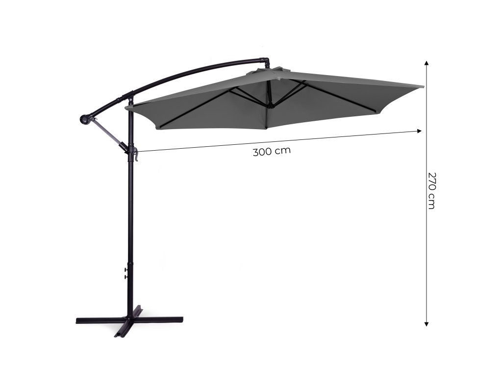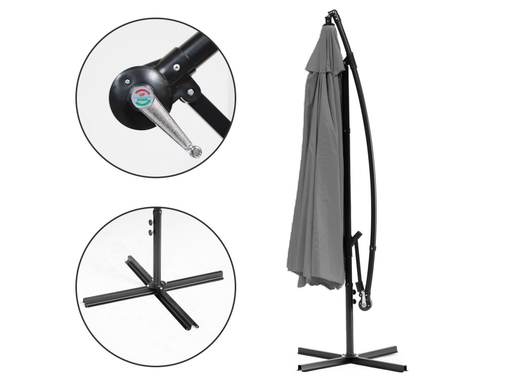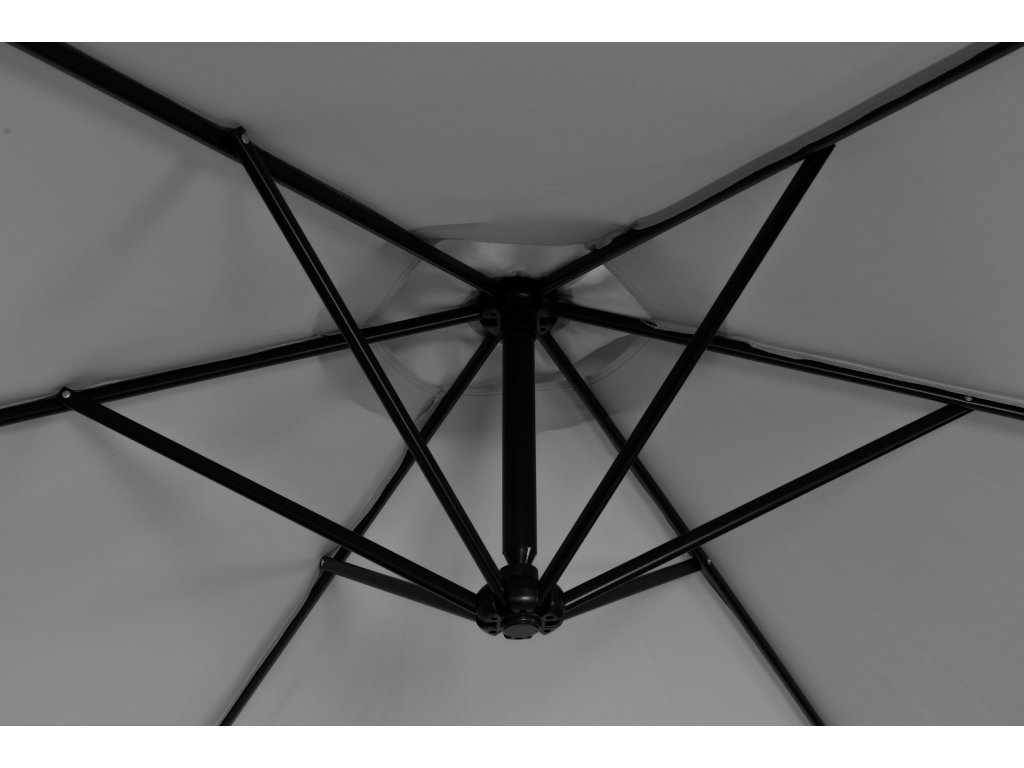 Konzolový slunečník je nezbytnou součástí každé zahrady nebo terasy. Jeho konstrukce umožňuje nastavit výšku a sklon stříšky slunečníku. Stříška se skládá ze 6 segmentů, díky čemuž je velmi stabilní a odolná. Použitý materiál je 160 g/㎡ voděodolný polyester. Rám je vyroben z práškově lakovaných ocelových trubek o průměru 48 mm. Pomocí kliky lze deštník rychle složit nebo rozložit.