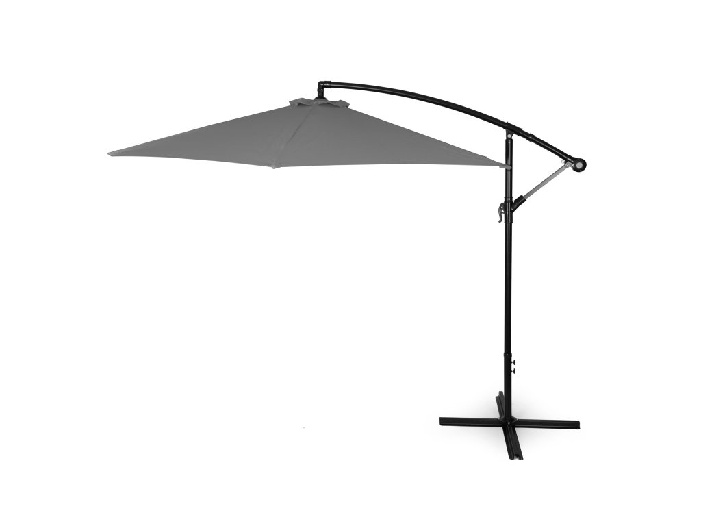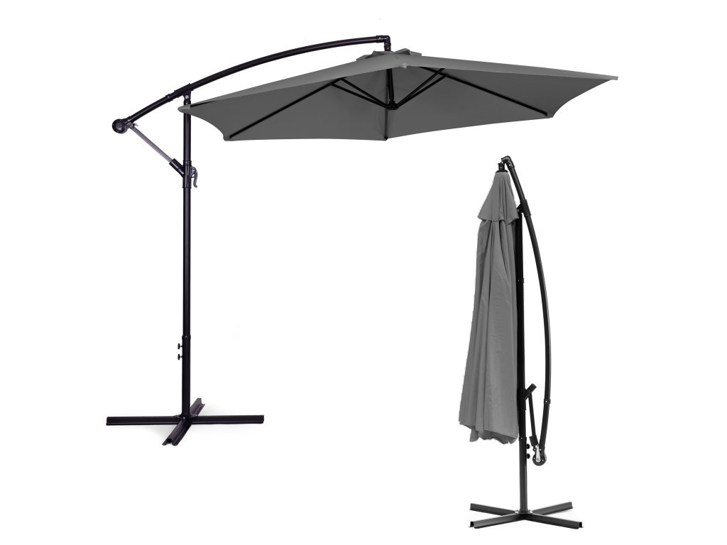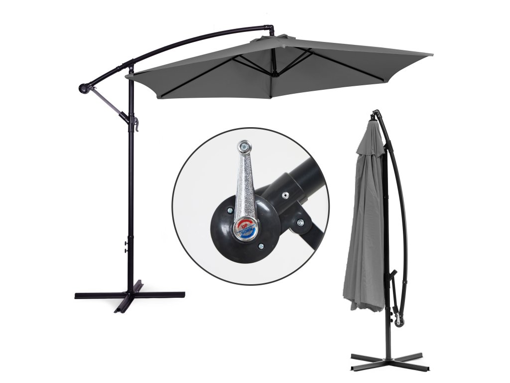 Velký zahradní slunečník s ramenem 3m, skládací, 6 žeber, šedý