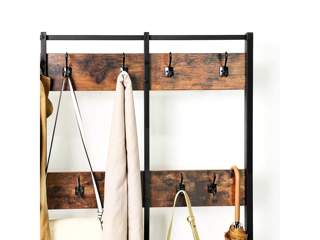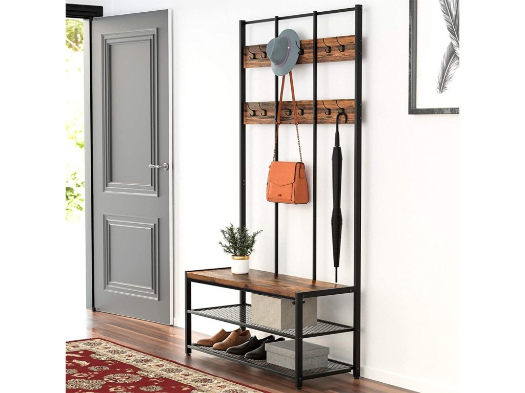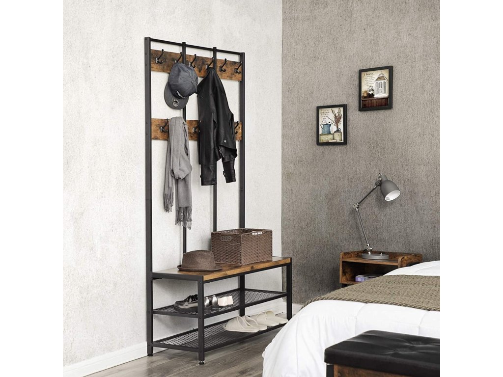 Máte dost nepořádku v předsíni nebo na chodbě? Leží bundy a kabáty na židlích a křeslech v obývacím pokoji a jídelně místo toho, aby visely na věšáku? Pokud je odpověď ano, jste na správném místě. Představujeme vám věšák na oblečení se sedátkem a policemi na boty, který vám pomůže udržet pořádek. Tento praktický kus nábytku uspořádá vaše svrchní oblečení, doplňky a další drobnosti, jako jsou klíče.