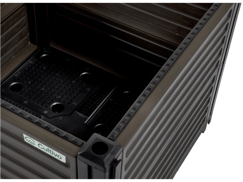 Pokročilý systém odvodu vody v bedně Cultivo GROW BOX S umožňuje udržovat optimální úroveň vlhkosti a eliminuje riziko přetečení a poškození kořenů.
