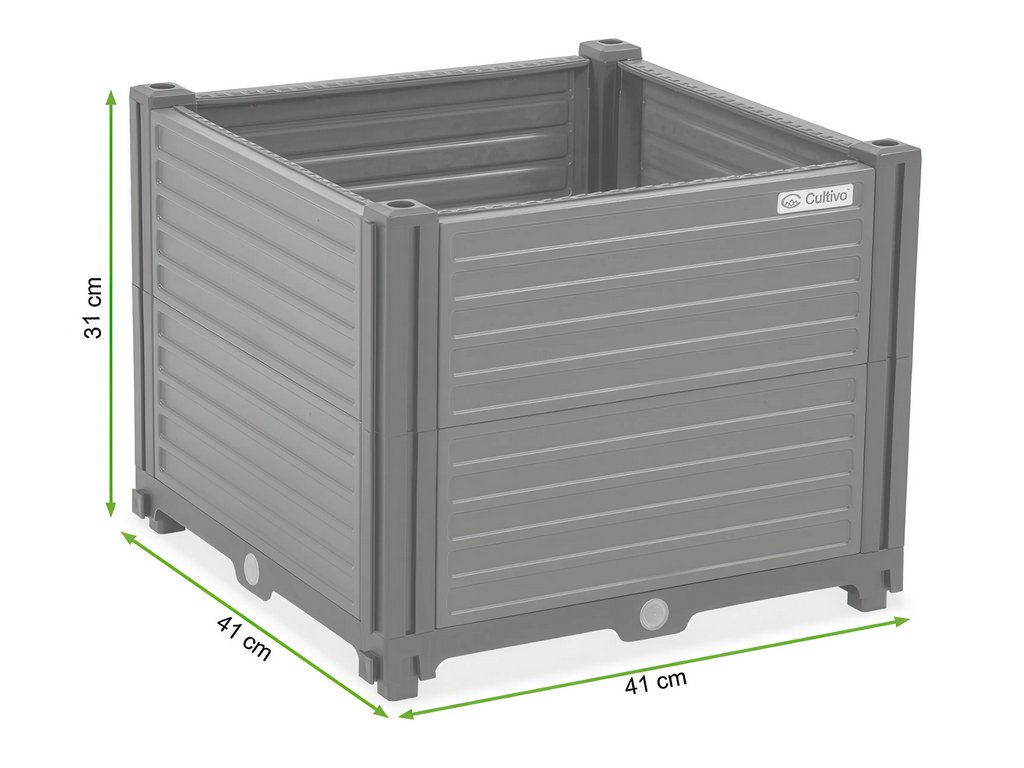 Cultivo GROW BOX S je kompaktní a funkční pěstební box, ideální pro každého milovníka zahradničení. Umožňuje pohodlné a efektivní pěstování zeleniny, bylinek a květin na zahradě, balkóně i terase. Díky robustní konstrukci zajišťuje stabilitu a odolnost a díky malým rozměrům (41 × 41 × 31 cm) je ideální i do menších prostor. Přípravek nevyžaduje údržbu a díky modulární konstrukci jej lze snadno rozšířit pomocí přídavného GROW BOX KIT. Intuitivní montáž bez použití nářadí znamená, že je připraven k použití během několika minut.