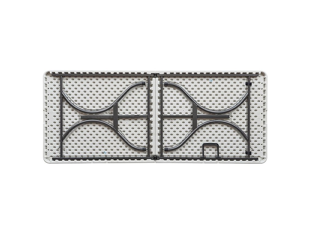 Deska cateringového stolu je vyrobena z odolného polyethylenu HDPE, který je odolný proti povětrnostním vlivům. Díky tomu jej lze používat doma i na zahradě. Speciální zajišťovací mechanismus zabraňuje nekontrolovanému skládání stolu. Rozměry desky stolu umožňují jeho pohodlné používání 6 osobami. Rám, který je vyroben z odolné práškově lakované oceli, lze složit do praktického přenosného pouzdra. Nosnost stolu je 100 kg.