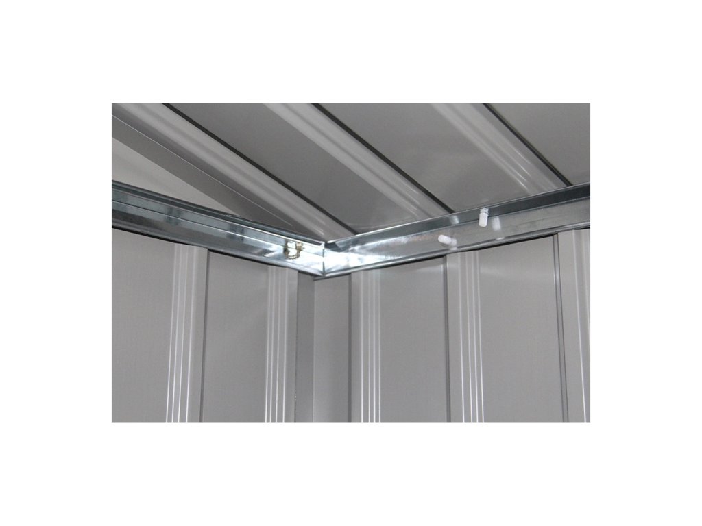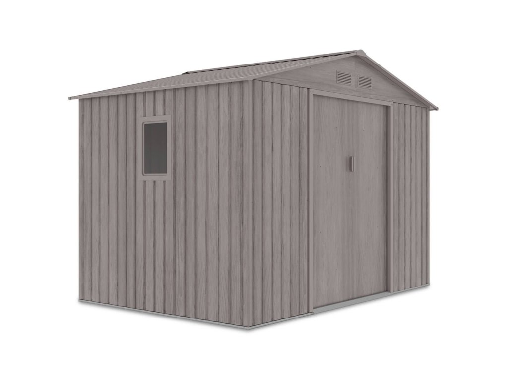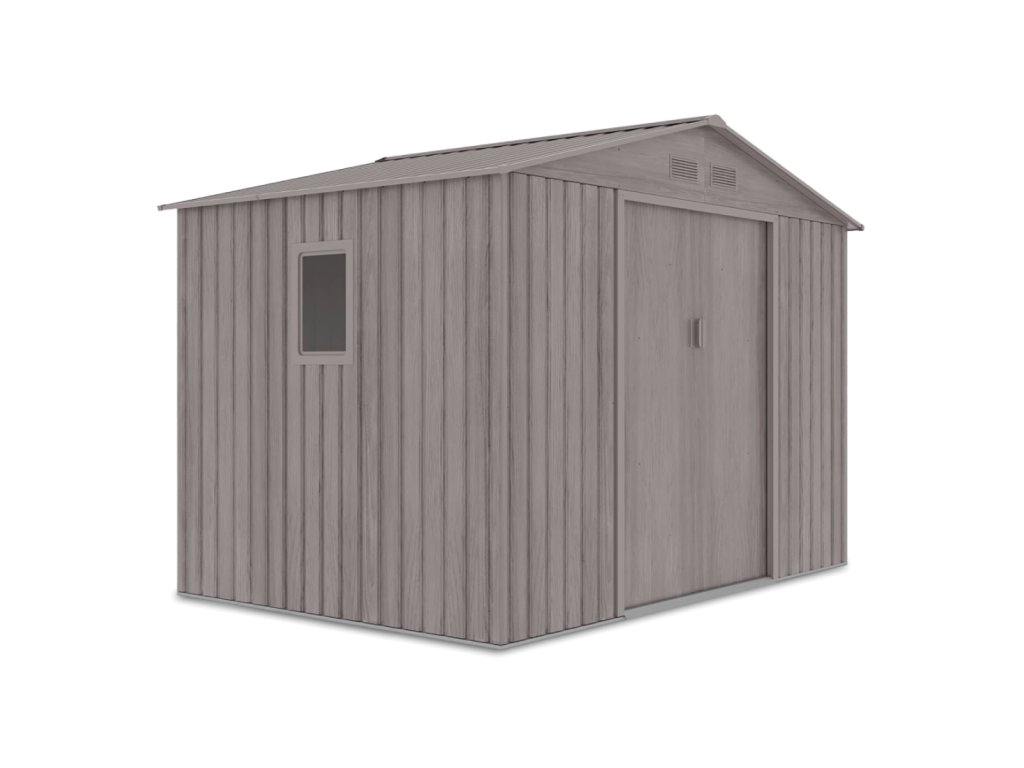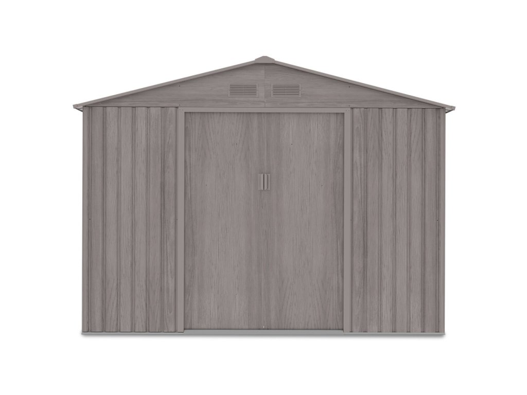 Zahradní domek HUDSON o rozměrech 277x191 cm nabízí 4,83 m² užitného prostoru, který je ideální pro skladování zahradního nářadí a nářadí. Konstrukce z pozinkované oceli se vyznačuje mimořádnou odolností a odolností proti korozi, což zaručuje dlouhou životnost. Dvojité posuvné dveře umožňují snadný přístup a jejich zajištění visacím zámkem zvyšuje ochranu obsahu. Větrací otvory účinně omezují problém vlhkosti a chrání uložené nářadí před rzí a plísní.