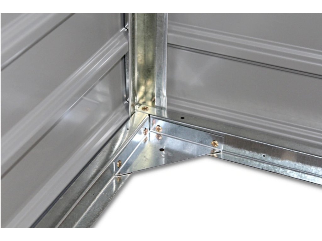 Domek HUDSON je vybaven ocelovými výztužnými úhelníky, které zvyšují stabilitu a odolnost konstrukce. Díky nim jsou stěny tužší a domek je odolný vůči nepříznivým povětrnostním podmínkám a zatížení. Antikorozní povrchová úprava navíc chrání úhelníky před rzí a zajišťuje jejich dlouhou životnost.
