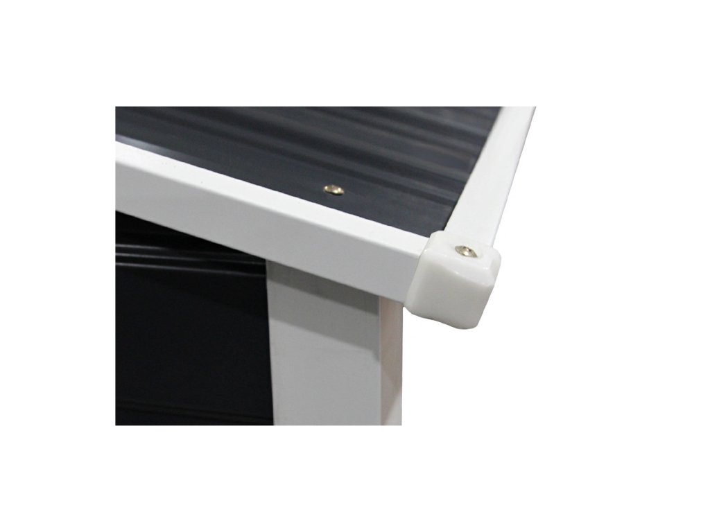Domek MONTREAL je vybaven ocelovými úhelníky, které zajišťují tuhost a zvyšují odolnost konstrukce proti zatížení. Antikorozní nátěr chrání úhelníky před rzí a zaručuje jejich dlouhou životnost.