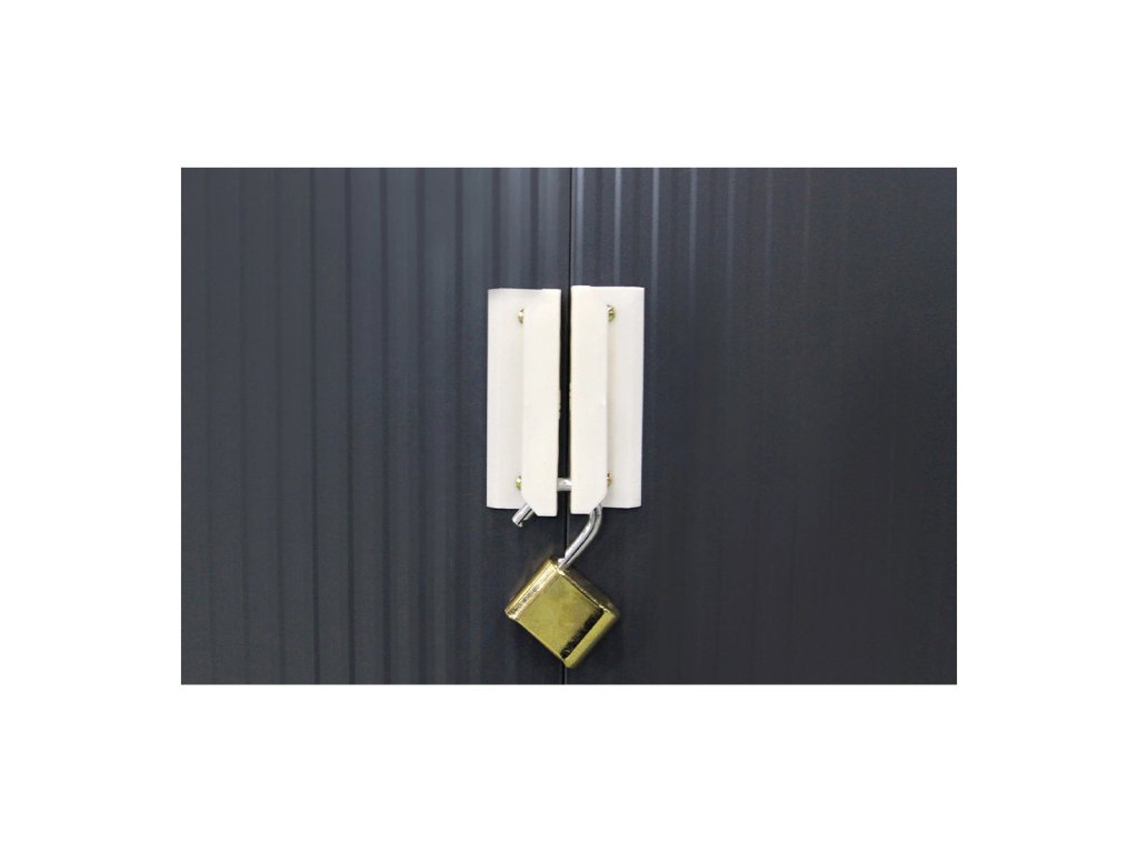 V domku MONTREAL mají dveře úchyty, které umožňují montáž visacího zámku nebo jiného typu zámku, což zajišťuje dodatečné zabezpečení. Je však třeba mít na paměti, že visací zámek není součástí dodávky.