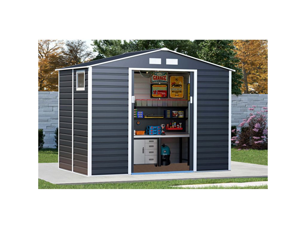 Domek na nářadí MONTREAL je univerzální kůlna na nářadí s posuvnými dveřmi. Je ideálním místem pro uložení nářadí, kol, sekaček a zahradního nářadí. Celá konstrukce je vyrobena z vysoce kvalitních materiálů – rám z pozinkované oceli a žárově pozinkované ocelové panely o tloušťce 0,25 mm. Díky tomu je zajištěna nejlepší pevnost, stabilita, trvanlivost a odolnost proti povětrnostním vlivům a korozi.