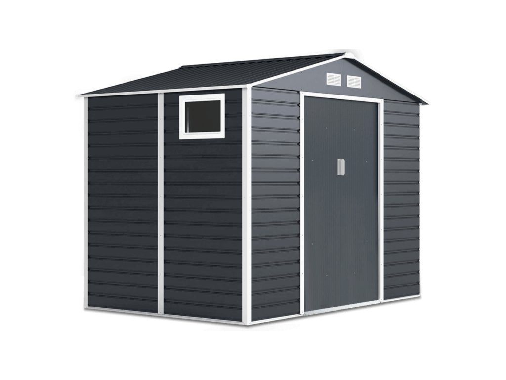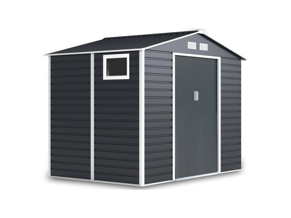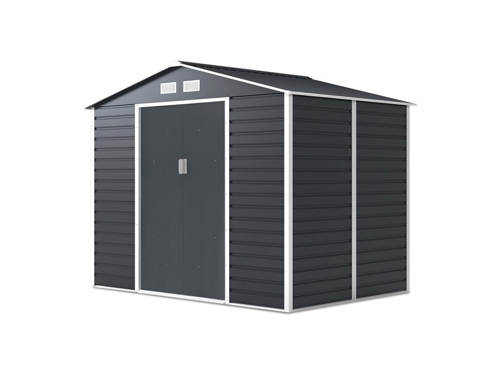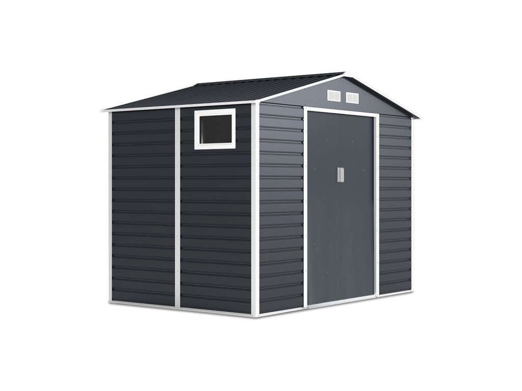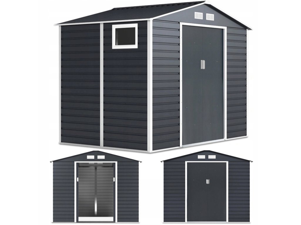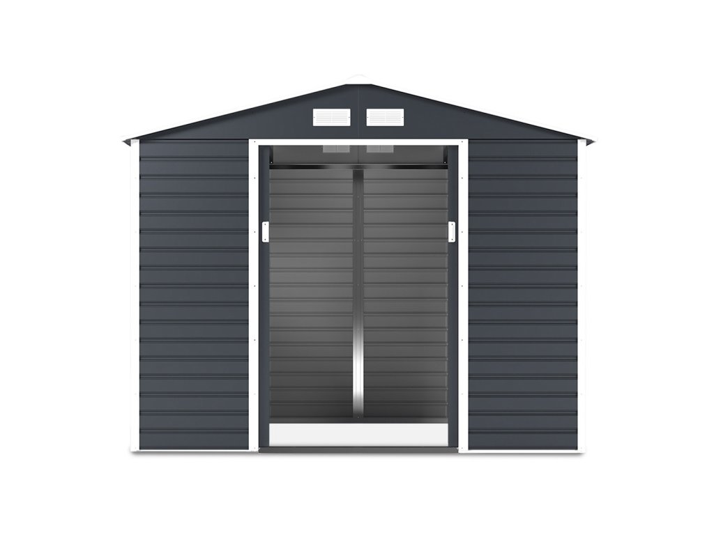 Zahradní domek na nářadí MONTREAL je stylové a praktické řešení pro skladování zahradního nářadí, kol a nástrojů. Robustní konstrukce z pozinkované oceli a panely o tloušťce 0,25 mm, žárově pozinkované, zaručují odolnost proti korozi a nepříznivým povětrnostním podmínkám. Díky sedlové střeše se na povrchu nehromadí voda a sníh, což zvyšuje bezpečnost používání. Domek má široké posuvné dveře s možností připevnění visacího zámku. Čtyři ventilační otvory zajišťují dostatečnou cirkulaci vzduchu a praktické okno vpouští dovnitř přirozené světlo.