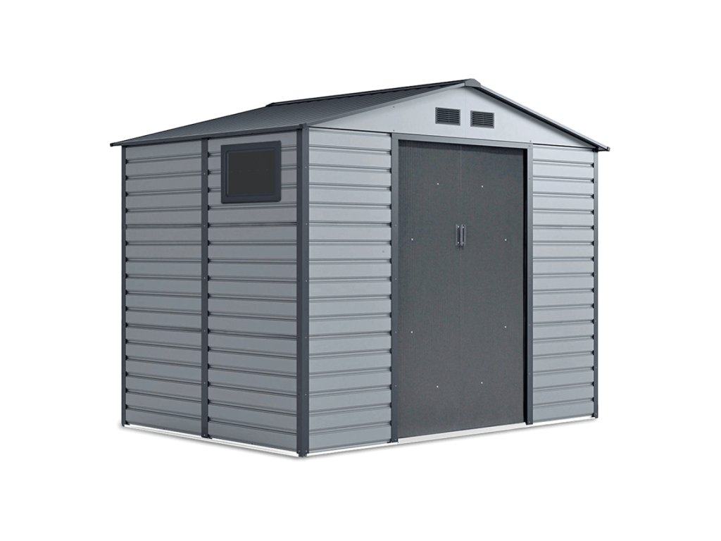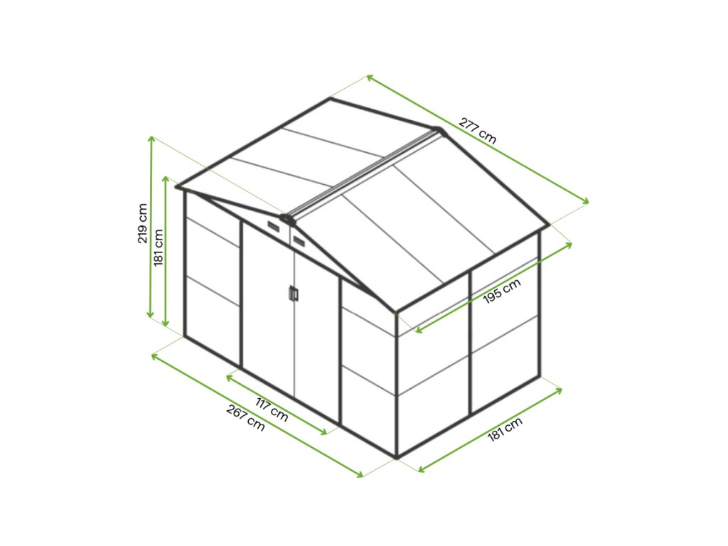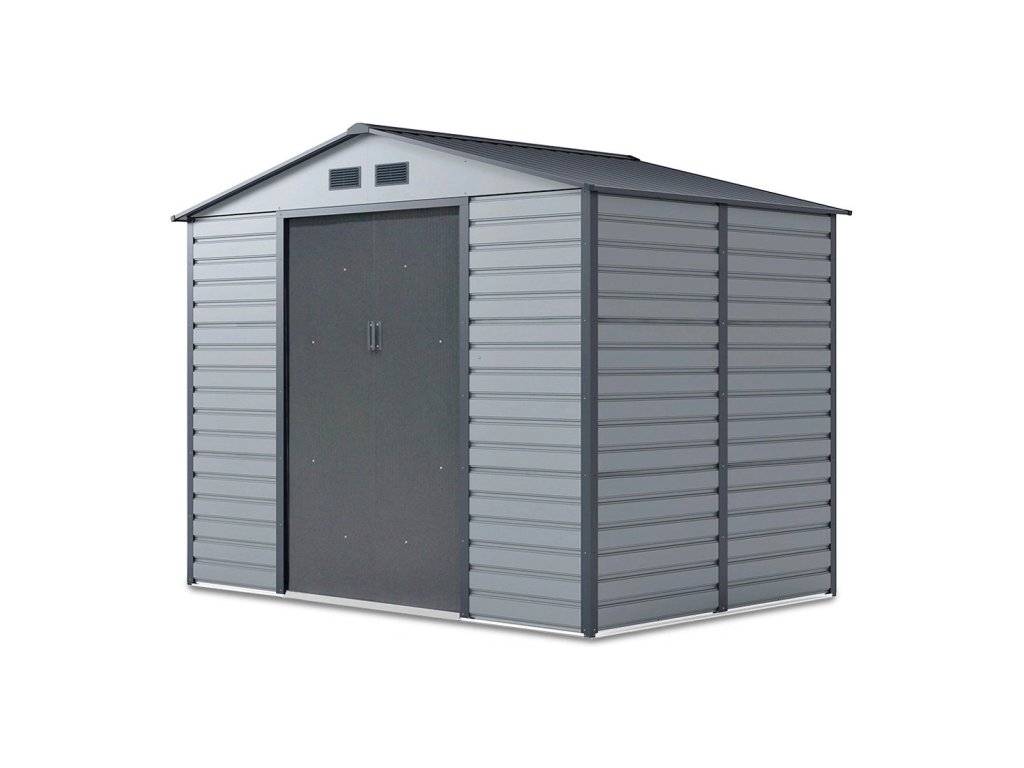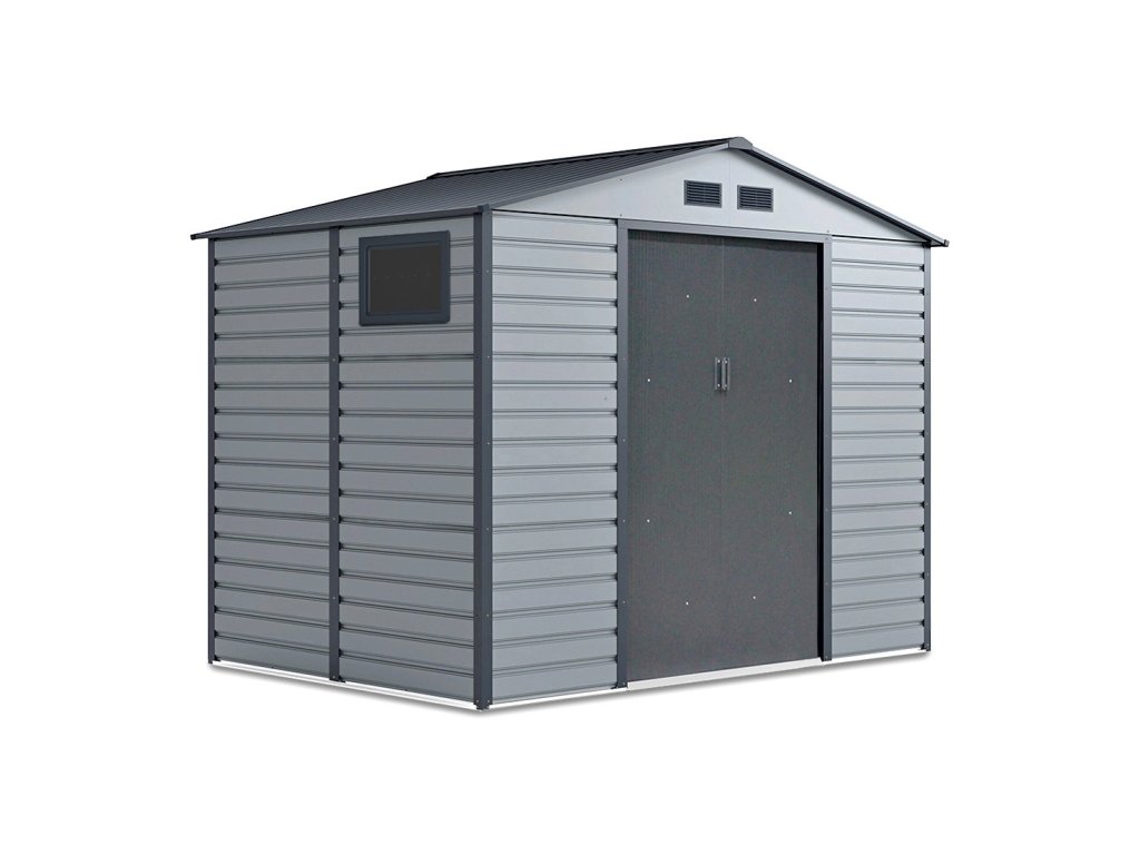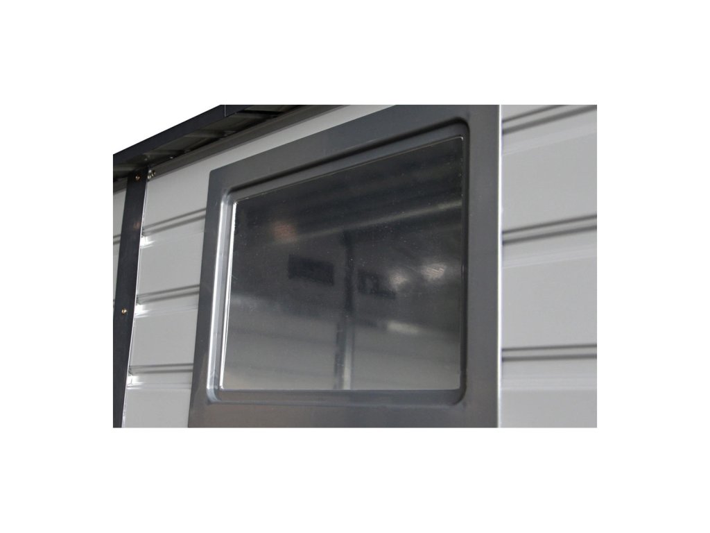 Zahradní domek na nářadí MONTREAL je stylové a praktické řešení pro skladování zahradního nářadí, kol a nástrojů. Robustní konstrukce z pozinkované oceli a panely o tloušťce 0,25 mm, žárově pozinkované, zaručují odolnost proti korozi a nepříznivým povětrnostním podmínkám. Díky sedlové střeše se na povrchu nehromadí voda a sníh, což zvyšuje bezpečnost používání. Domek má široké posuvné dveře s možností připevnění visacího zámku. Čtyři ventilační otvory zajišťují dostatečnou cirkulaci vzduchu a praktické okno vpouští dovnitř přirozené světlo.