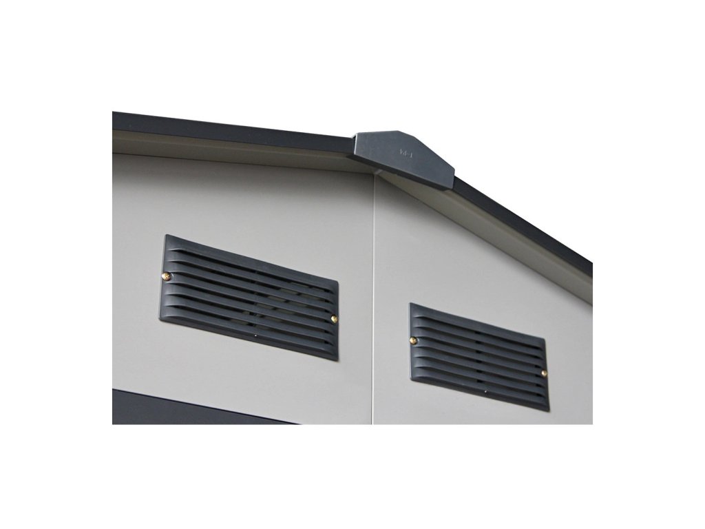 Čtyři ventilační otvory v kůlně MONTREAL zajišťují správnou cirkulaci vzduchu. Díky nim je vnitřní prostor dobře větraný, což minimalizuje riziko vlhkosti, koroze a vzniku plísní.