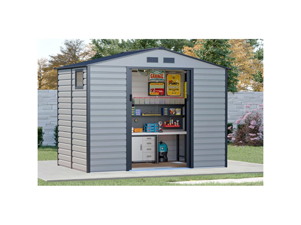 Domek na nářadí MONTREAL je univerzální kůlna na nářadí s posuvnými dveřmi. Je ideálním místem pro uložení nářadí, kol, sekaček a zahradního nářadí. Celá konstrukce je vyrobena z vysoce kvalitních materiálů – rám z pozinkované oceli a žárově pozinkované ocelové panely o tloušťce 0,25 mm. Díky tomu je zajištěna nejlepší pevnost, stabilita, trvanlivost a odolnost proti povětrnostním vlivům a korozi.