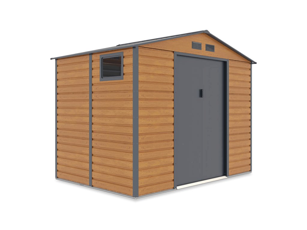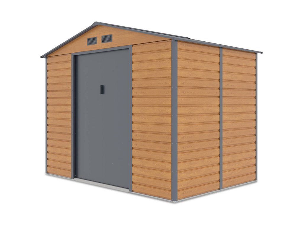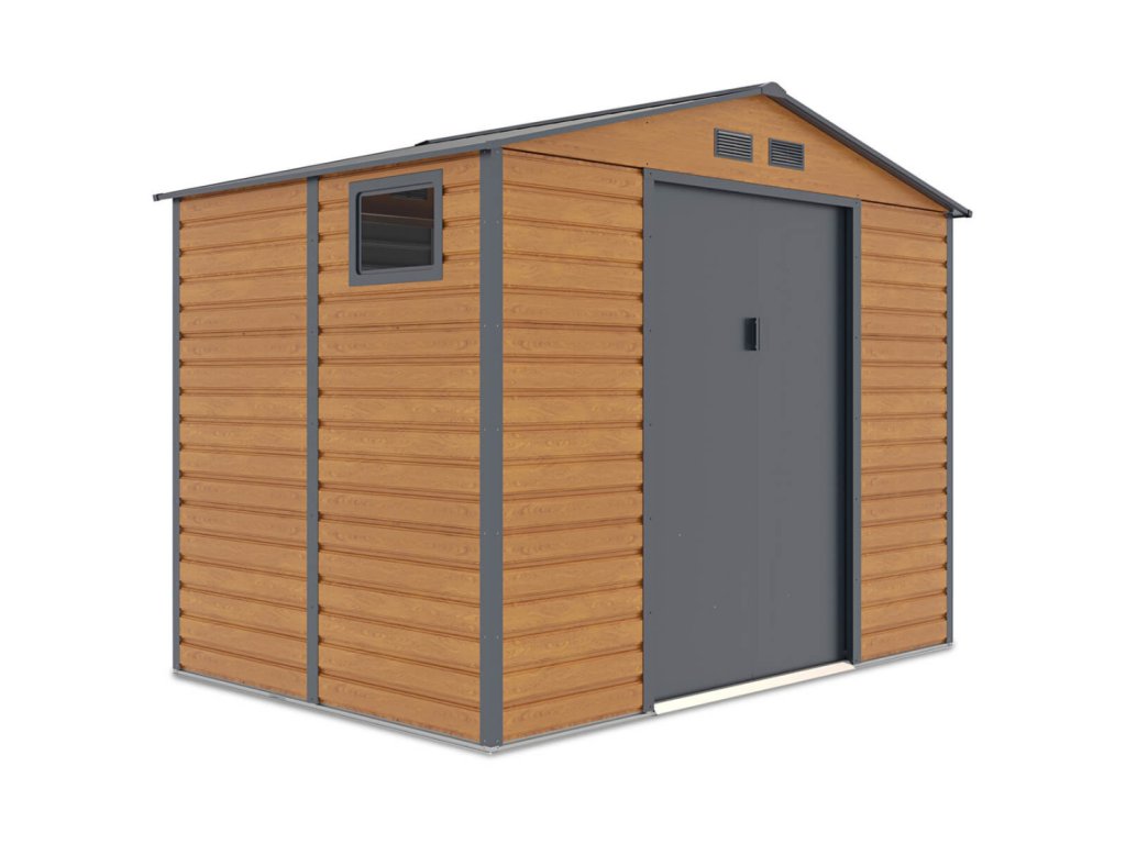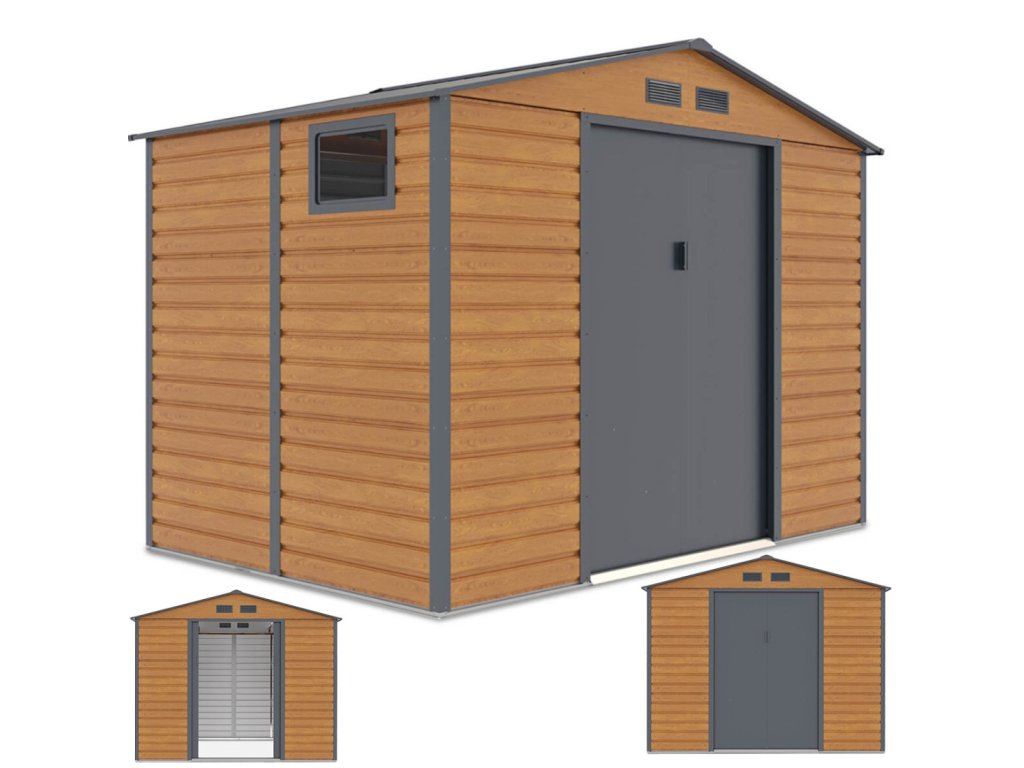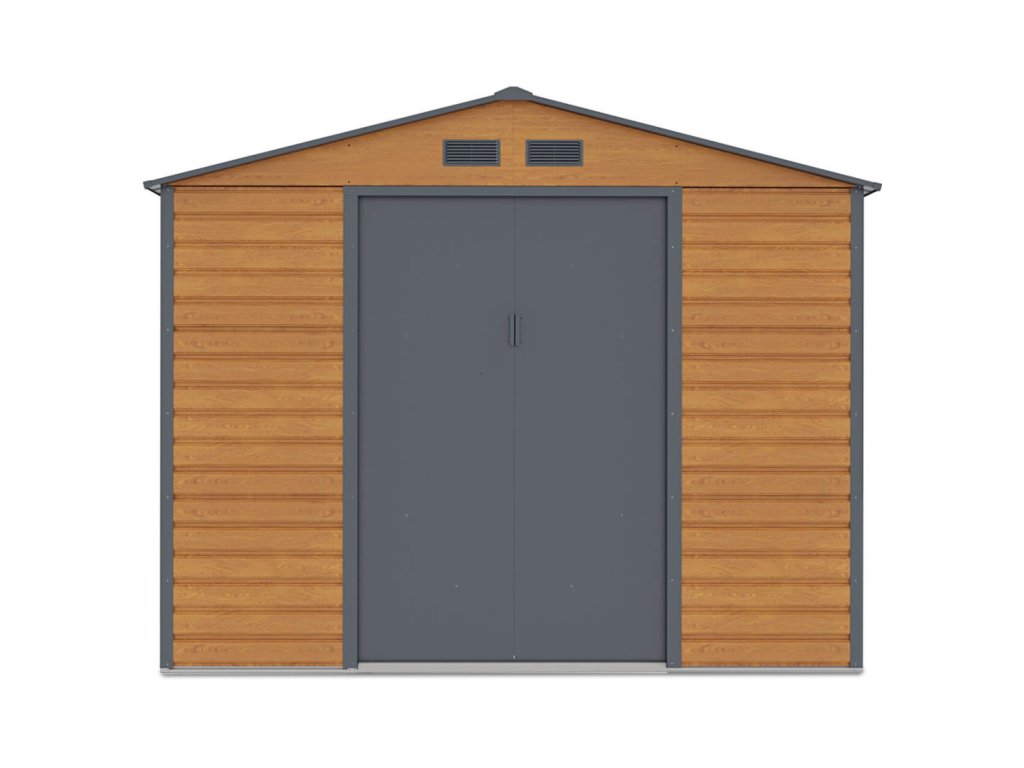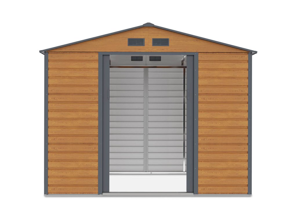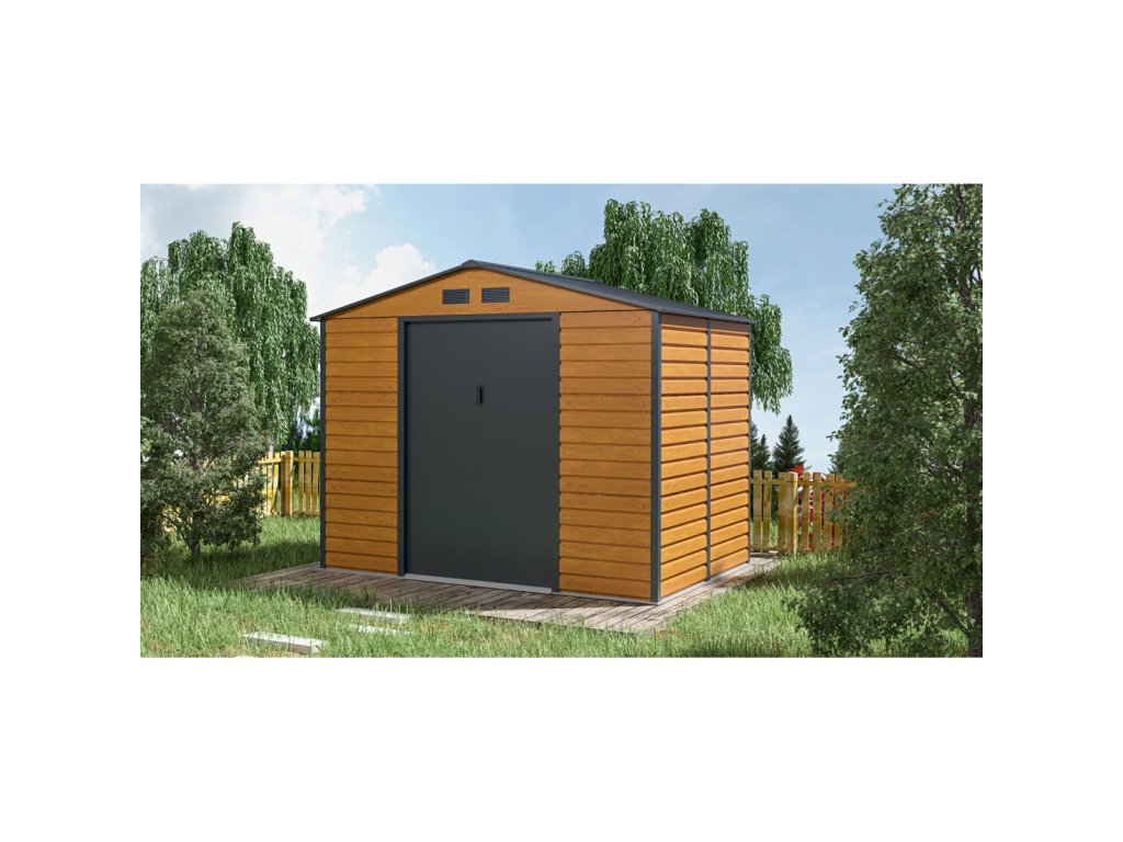 Zahradní domek na nářadí MONTREAL je stylové a praktické řešení pro skladování zahradního nářadí, kol a nástrojů. Robustní konstrukce z pozinkované oceli a panely o tloušťce 0,25 mm, žárově pozinkované, zaručují odolnost proti korozi a nepříznivým povětrnostním podmínkám. Díky sedlové střeše se na povrchu nehromadí voda a sníh, což zvyšuje bezpečnost používání. Domek má široké posuvné dveře s možností připevnění visacího zámku. Čtyři ventilační otvory zajišťují dostatečnou cirkulaci vzduchu a praktické okno vpouští dovnitř přirozené světlo.