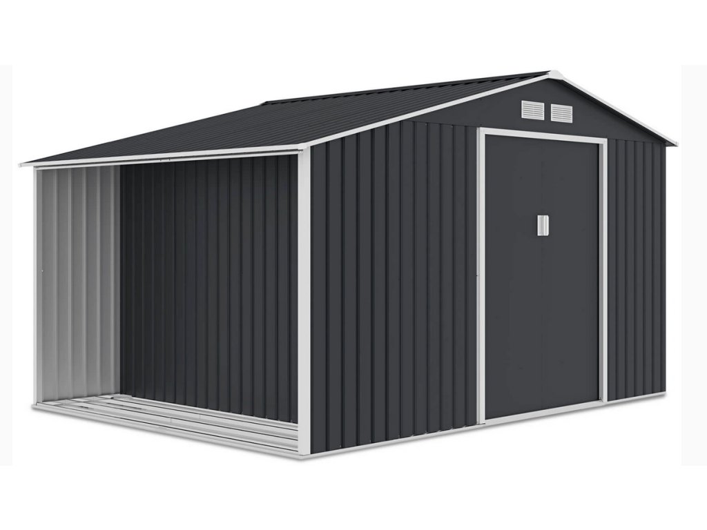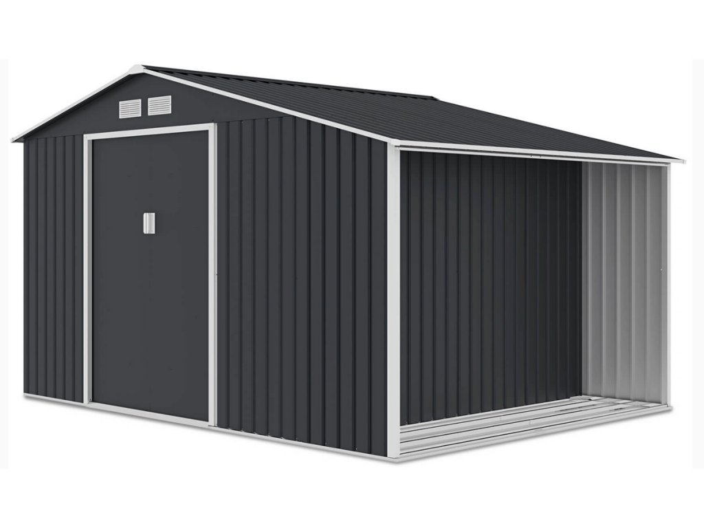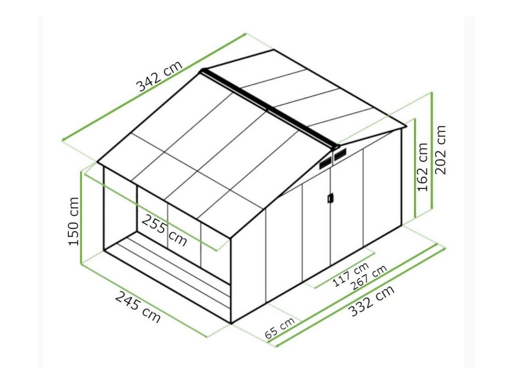 Zahradní domek s dřevníkem MADISON je vyroben z pevného kovu –dostatečně silného a chráněného před povětrnostními vlivy. Konstrukce je vyrobena z oceli, která prošla galvanizací a pozinkováním, díky čemuž je odolná proti vlhkosti, dešti a tím pádem i proti korozi. Do tohoto domku se také nedostanou hlodavci – proto se nemusíte obávat o bezpečnost uložených příslušenství, kabelů, semen a nářadí. Domek se skládá ze dvou úložných prostorů. Jedním z nich je uzavřená místnost, ve které můžete skladovat zahradní nářadí. Druhé místo je praktická, zastřešená kůlna na dřevo – ideální pro skladování palivového dřeva, ale také např. jízdních kol.