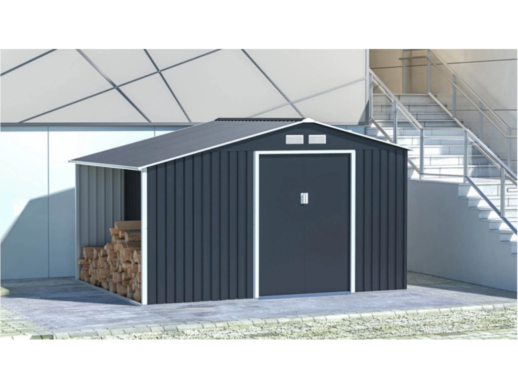 Zahradní domek s dřevníkem 2v1 MADISON 342x255cm Cold Grey