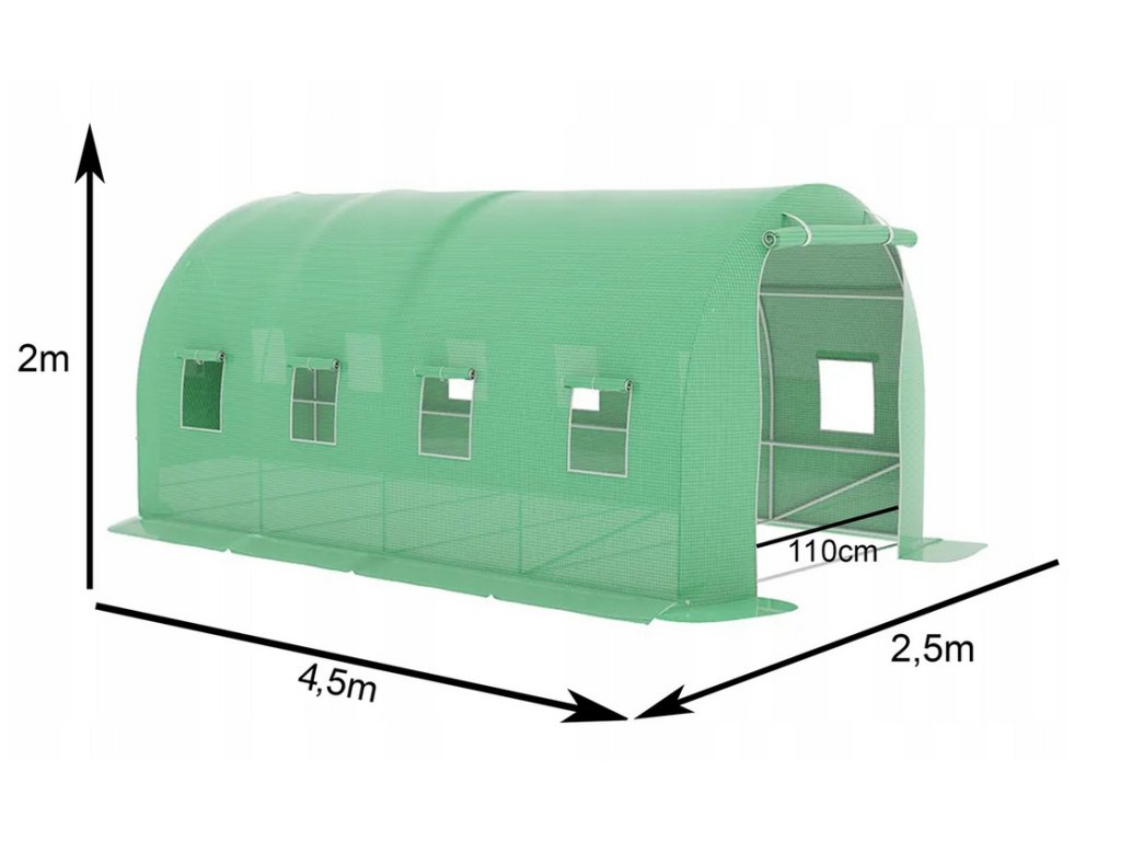 Zahradní fóliovník 4,5x2,5x2m 11,25 m² 2 vchody UV-4 + semínka a provázek Zdarma!