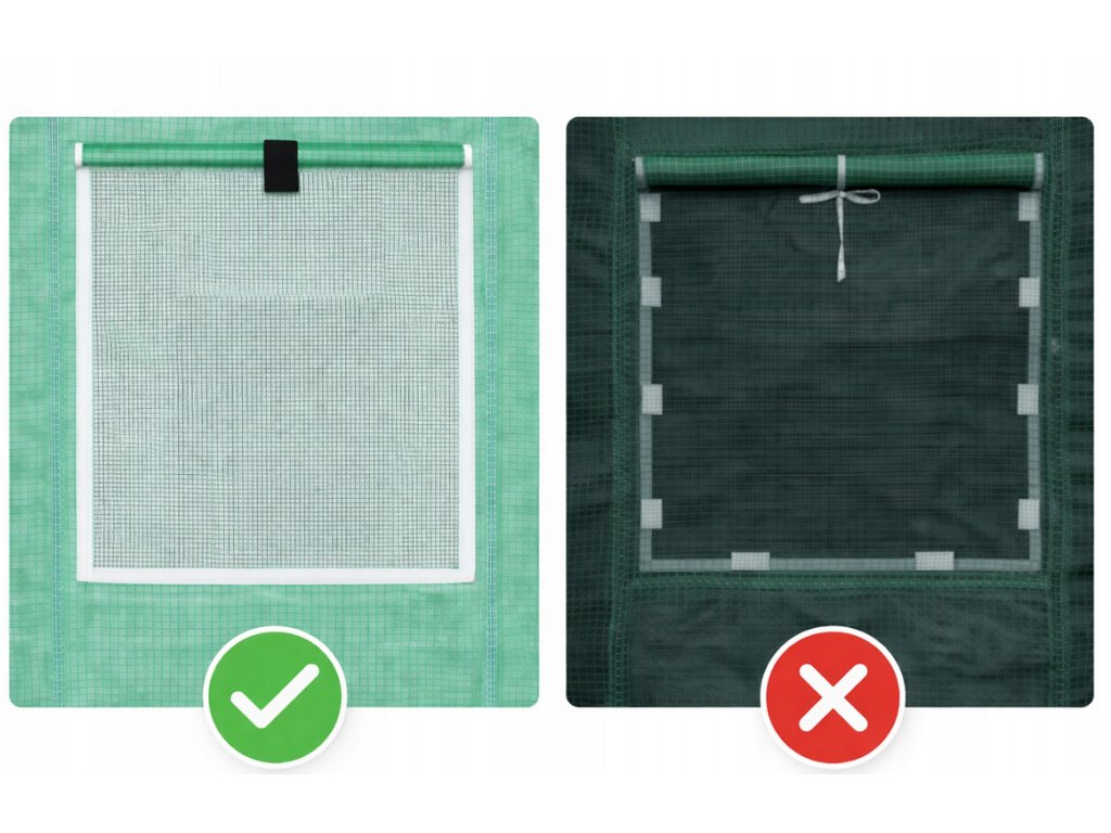 Náš fóliovník má suchý zip po celém obvodu okna, ne ve spotech jako u jiných prodejců! To zaručuje, že se okna nebudou otevírat při větrných podmínkách.