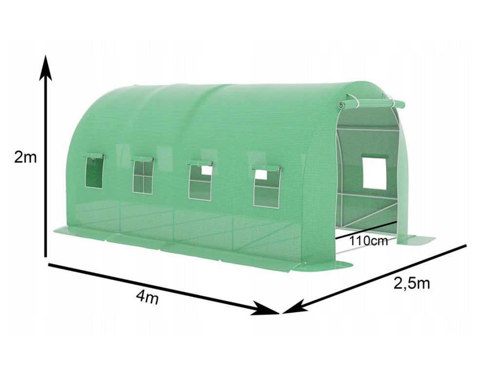 Zahradní fóliovník 4x2,5x2m 10 m² 2 vchody UV-4 + semínka a provázek Zdarma!