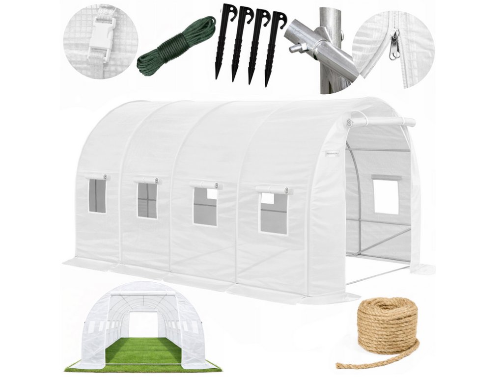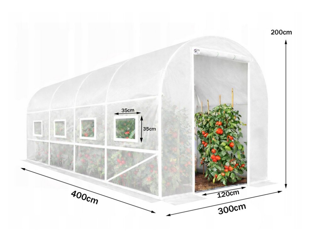 Zahradní fóliovník 4x3x2m 12 m² 2 vchody UV-4 + semínka a provázek Zdarma!, Bílá