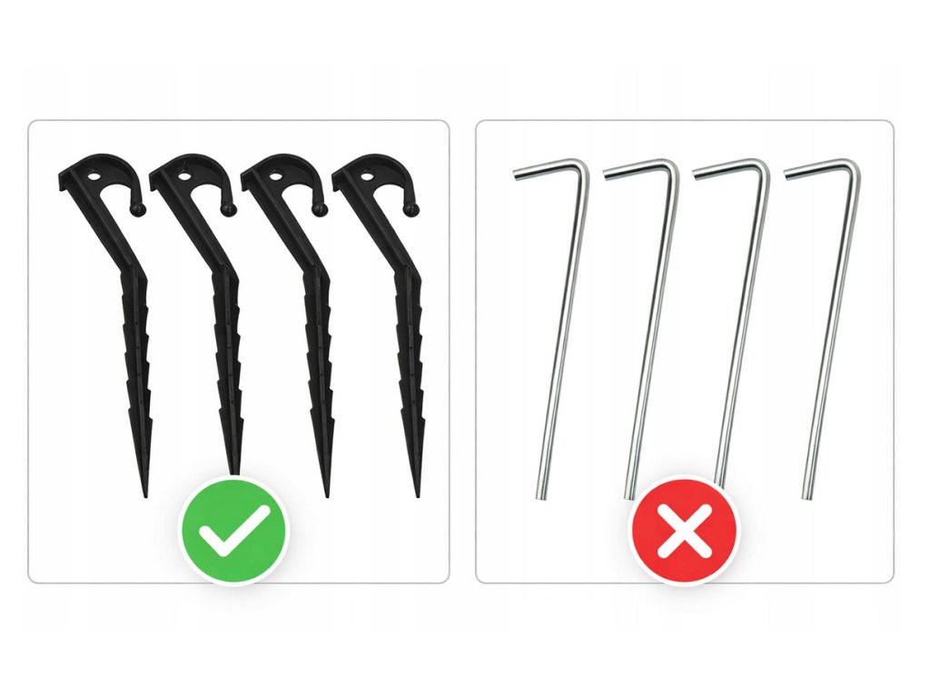 Přídavná zemní zástěrka na bočních okrajích fólie umožňuje její zakrytí zeminou nebo kameny, které ochrání tunel před odfouknutím fólie.