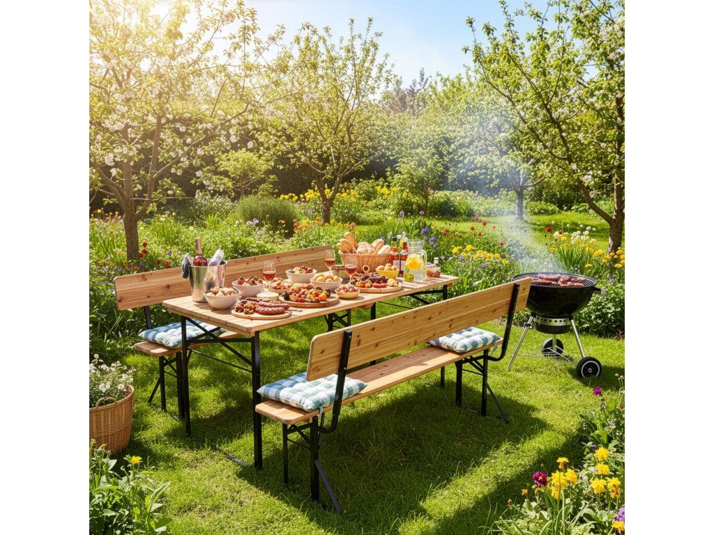 ✅Specifikace Sada: Stůl + 2 lavice s opěradlem