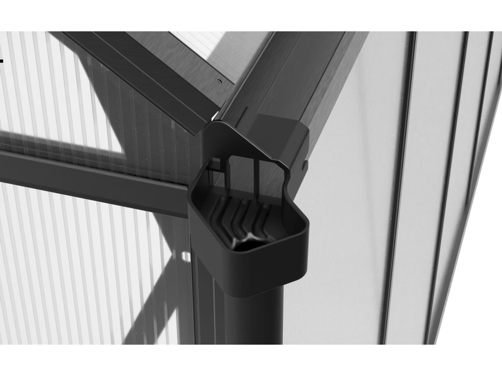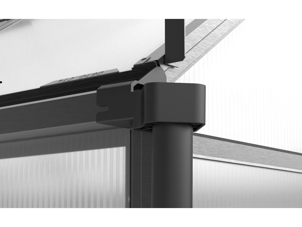Pokročilý systém Slide-In umožňuje montáž polykarbonátových panelů bez použití kovových spon, které se zasouvají přímo do rámů konstrukce, což zaručuje výjimečnou stabilitu a trvanlivost konstrukce. Díky tomu je rychlá montáž skleníku snadná i pro začátečníky. Panely jsou pevně uchyceny v rámu, což zajišťuje mimořádnou odolnost proti větru a nepříznivým povětrnostním podmínkám. Absence volných prvků také znamená menší riziko poškození skleníku v dlouhodobém horizontu. Přesné fungování systému je představeno ve videu. Je třeba mít na paměti, že vzhledem ke specifikům montážního systému musí být skleník umístěn nejméně 1,5 metru od budovy, aby byla zajištěna správná instalace a ventilace.