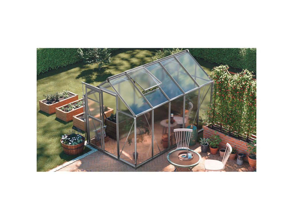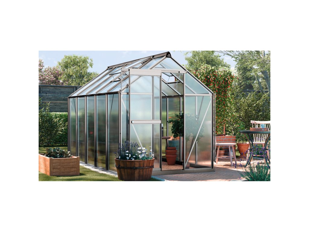 Zahradní skleník z polykarbonátu Slide-In NEW 183x303cm silver od značky Cultivo s vyztuženou konstrukcí je ideální volbou pro ty, kteří chtějí ve své zahradě vytvořit profesionální podmínky pro pěstování rostlin. Vyznačuje se moderním designem a černým provedením, které mu dodává jedinečný charakter. Díky délce 303 cm nabízí hodně prostoru pro vaše rostliny a umožňuje pohodlné pěstování zeleniny, květin i bylinek. Odolné polycarbonátové panely o tloušťce 4 mm s UV ochranou účinně rozptylují sluneční světlo, poskytují rostlinám ideální podmínky pro růst a zároveň je chrání před škodlivým zářením. Robustá hliníková konstrukce a pozinkovaná ocelová základna zaručují odolnost a odolnost vůči proměnlivým povětrnostním podmínkám. Inovativní montážní systém Slide-In usnadňuje sestavení skleníku, zvyšuje stabilitu celé konstrukce a eliminuje nutnost použití spon. Díky dvěma ventilačním oknům a posuvným dveřím skleník nabízí optimální cirkulaci vzduchu a snadný přístup dovnitř. Jeho promyšlený design umožňuje efektivní využití prostoru a díky své estetice je nejen funkčním, ale i dekorativním prvkem zahrady.