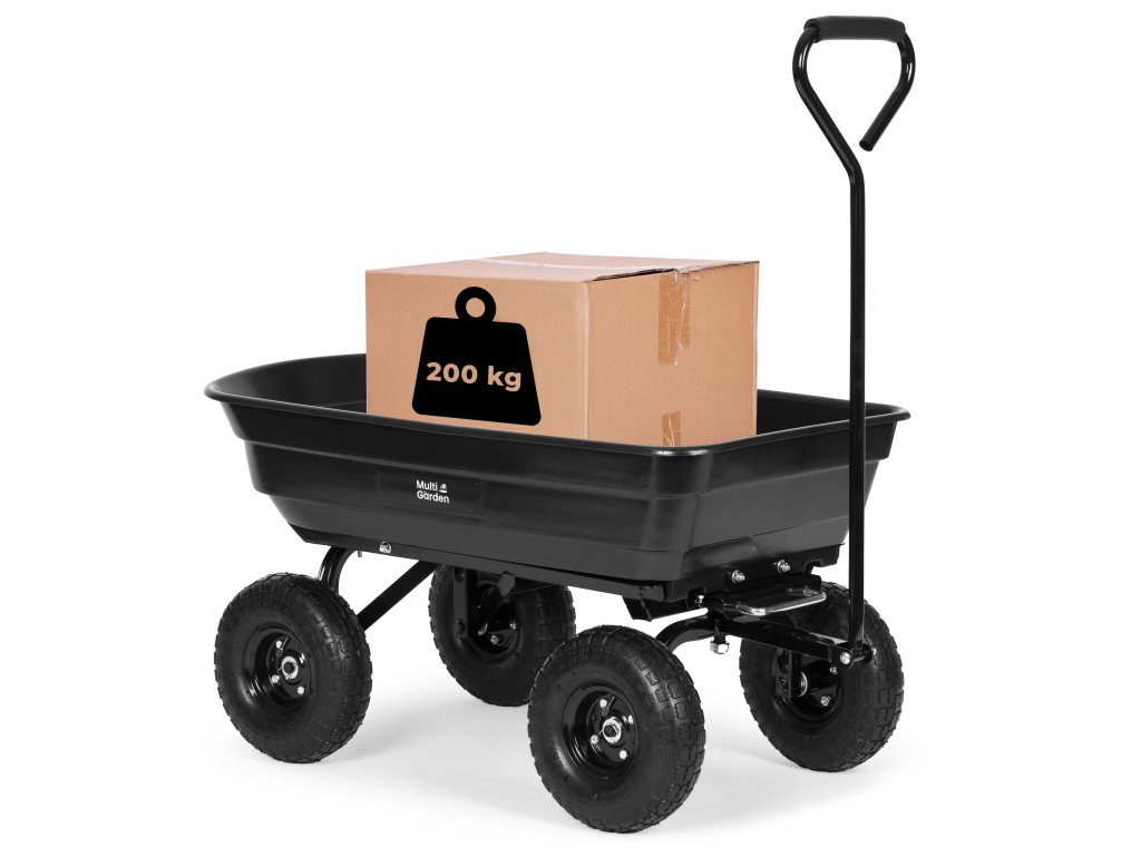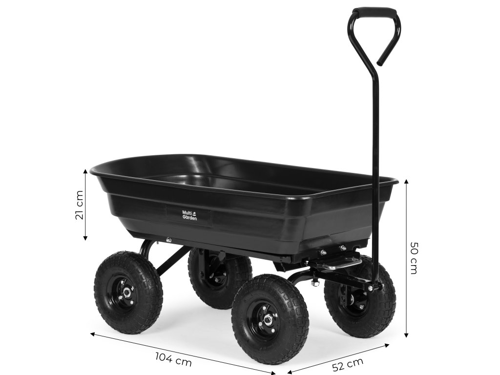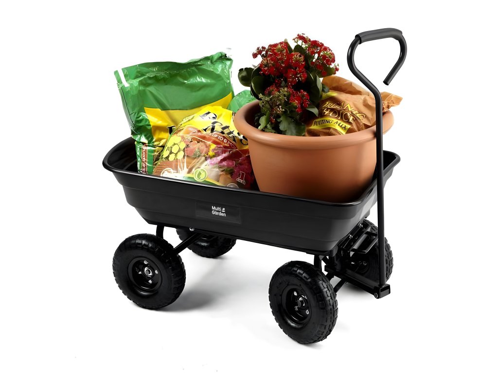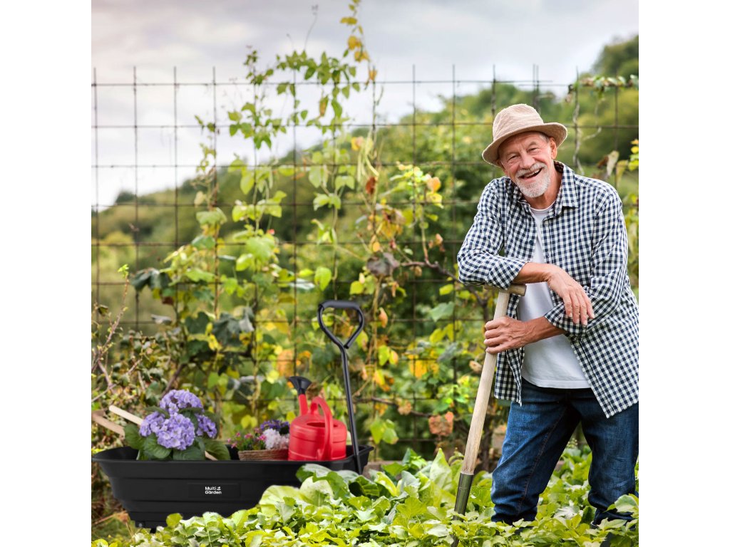 Zapomeňte na těžkou a vyčerpávající práci na zahradě. Zahradní vozík MultiGarden je nezbytným pomocníkem pro parcely a farmy, takže je dokonalým řešením pro každého, kdo oceňuje pohodlí a efektivitu. S velkou ložnou plochou 94x52 cm a maximální nosností 200 kg snadno přepravíte zeminu, dřevo, kameny, nářadí nebo sazenice. Robustní kovová konstrukce zajišťuje odolnost, zatímco velká nafukovací kola s běhounem umožňují vozíku projíždět i tím nejnáročnějším terénem.